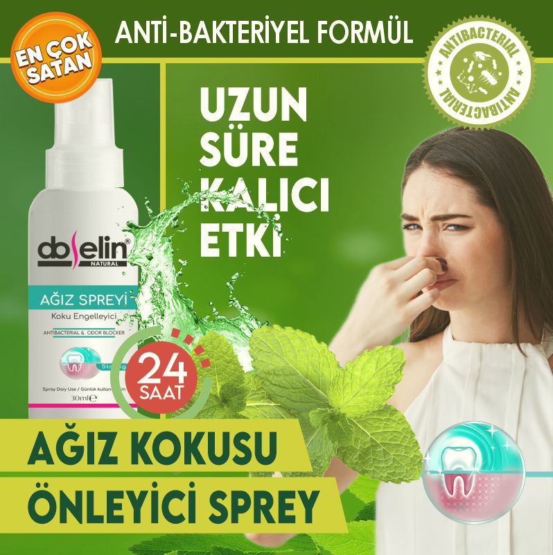 Ağız Kokusu Giderici Sprey, Ağız Kokusu Önleyici & Nefes Tazeleyici Ağız Bakım Spreyi Ağzınızın içerisindeki kötü kokuları yok ederek daha taze ve ferah bir nefese sahip olmanızı sağlar.